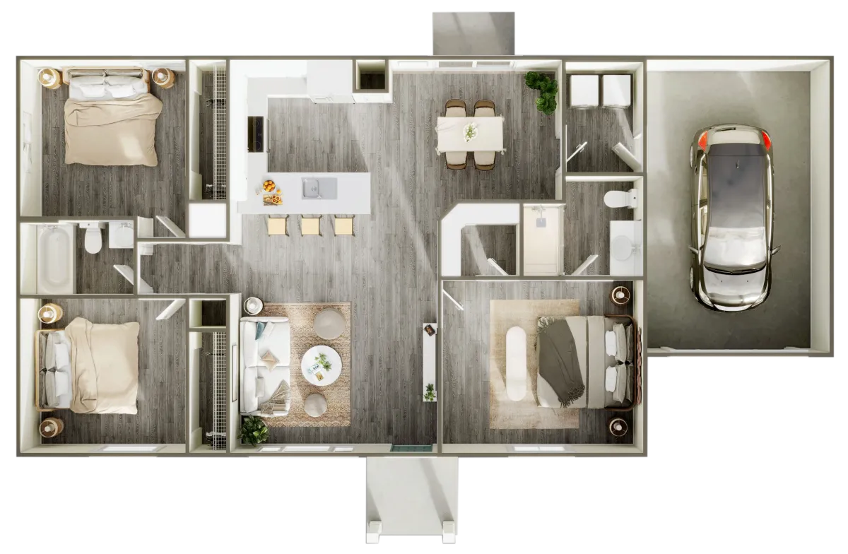 The Magnolia model offers 2,040 sqft of beautifully designed space, featuring 3 bedrooms and 2 baths.